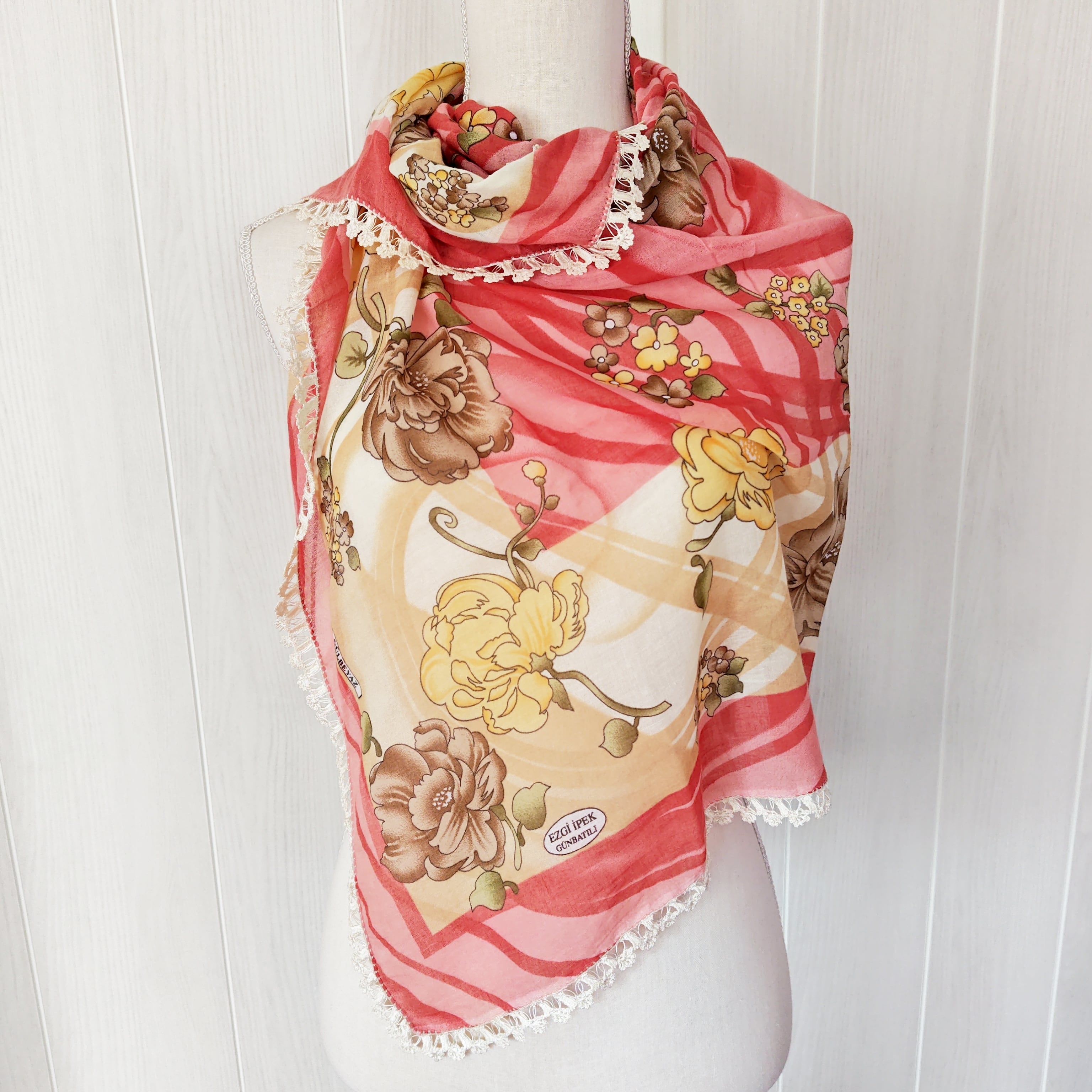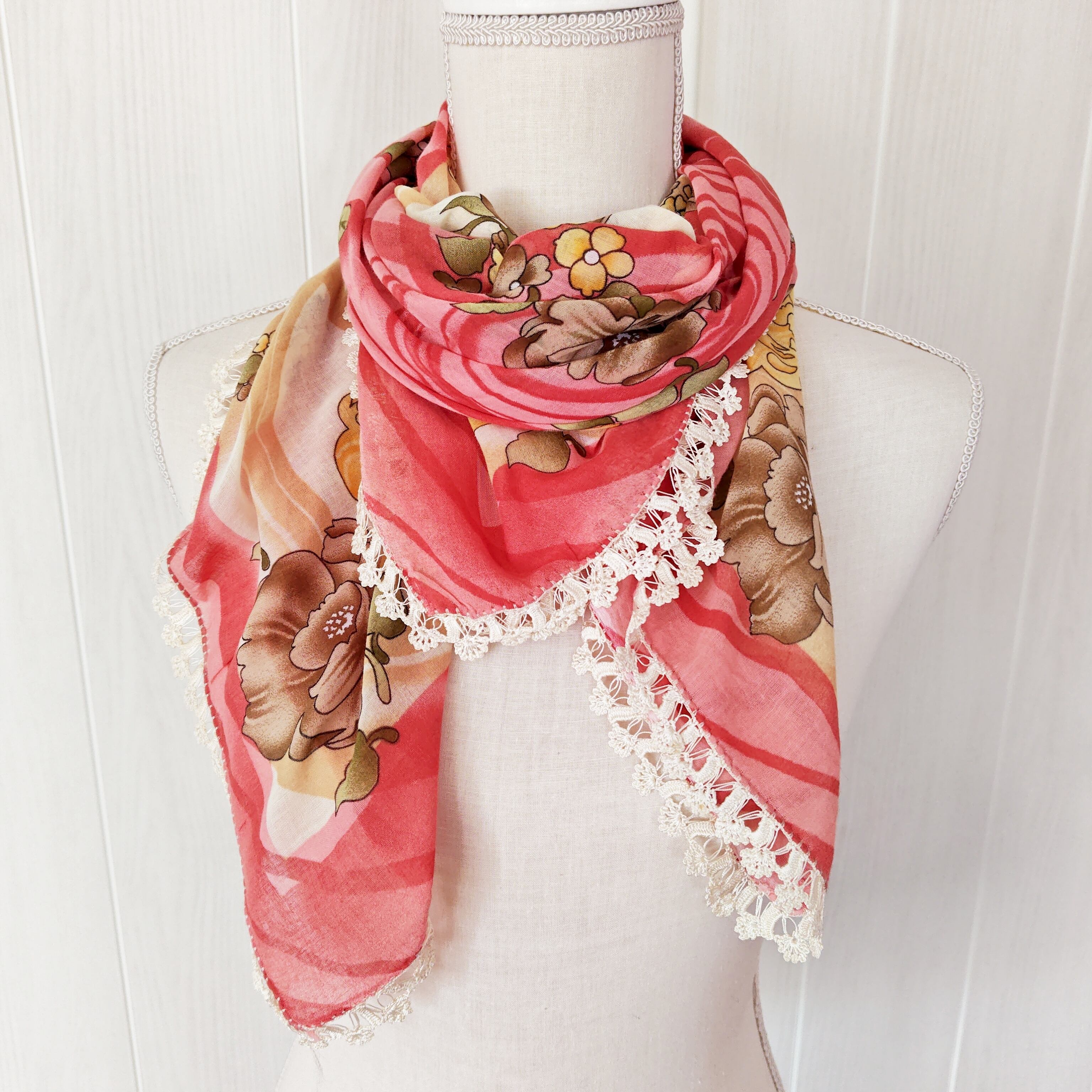 トルコの手工芸品オヤのついたスカーフで縁の刺繍はハンドメイドです